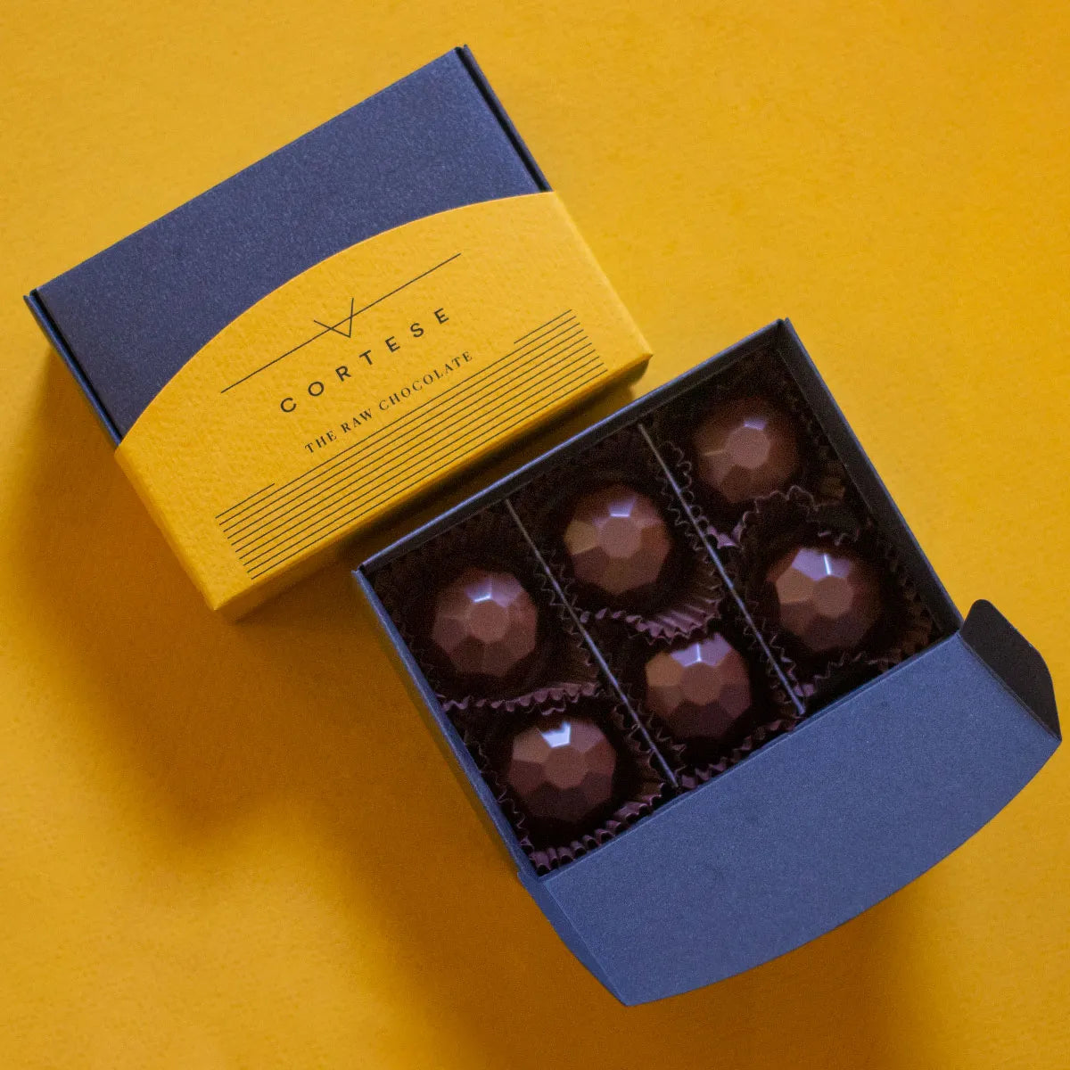 Una deliziosa cupola di cioccolato crudo croccante ben temperato che racchiude un cuore di dolce crema al pistacchio.